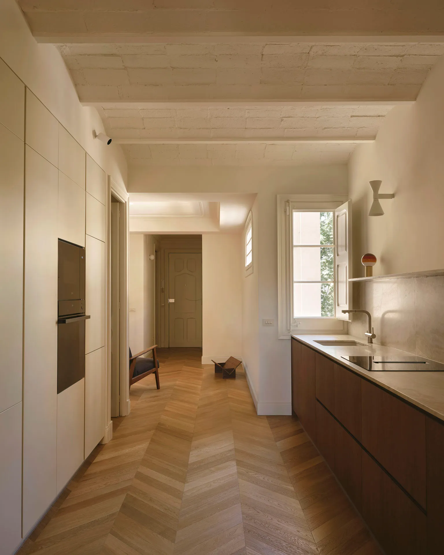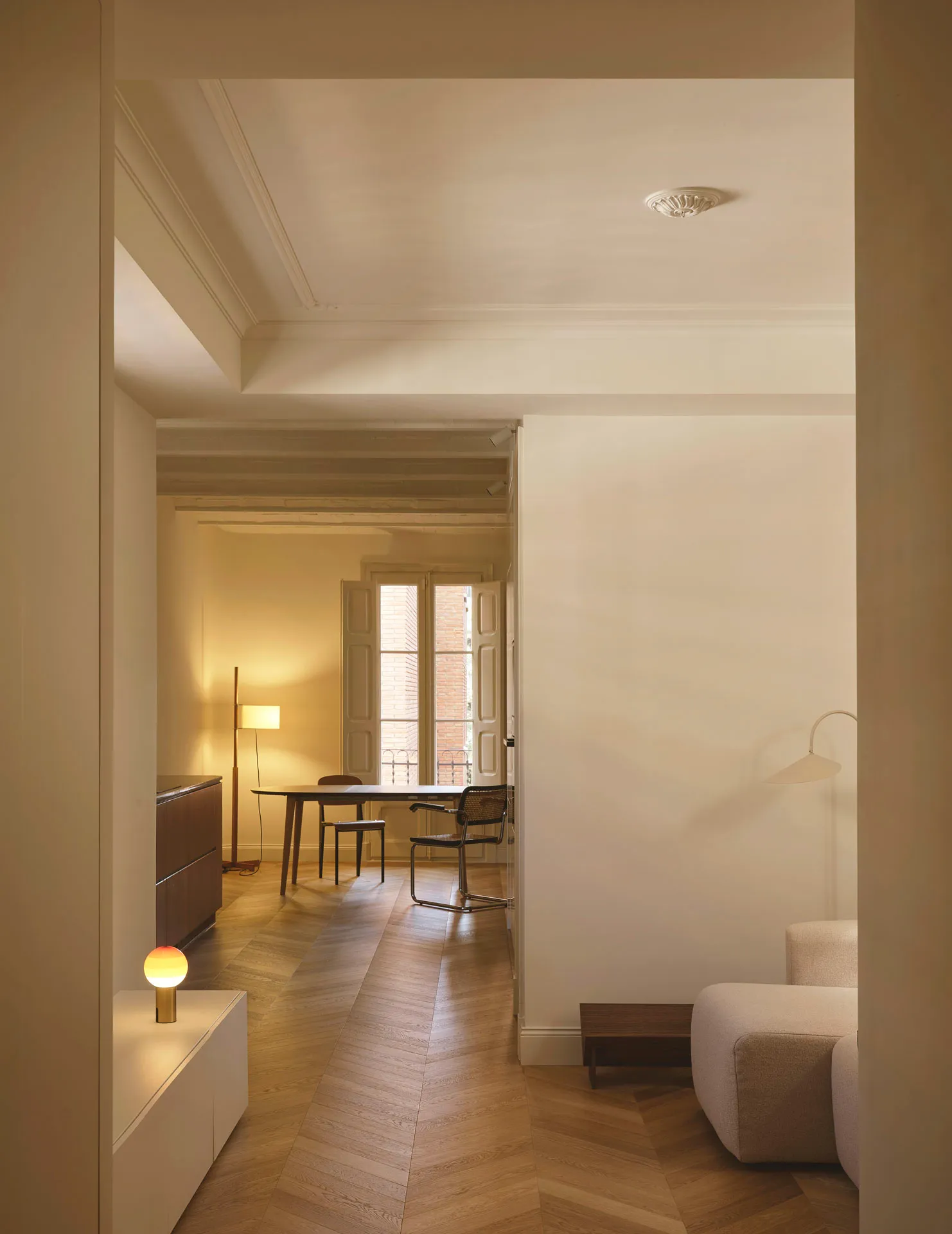 El concepto de este proyecto gira en torno a una idea principal: crear una vivienda que propicie la calma a través de la luz y la materia. Se parte de una estructura con valor histórico para reinterpretarla desde la serenidad, utilizando materiales naturales con fuerte presencia y trabajando la luz como herramienta emocional.
